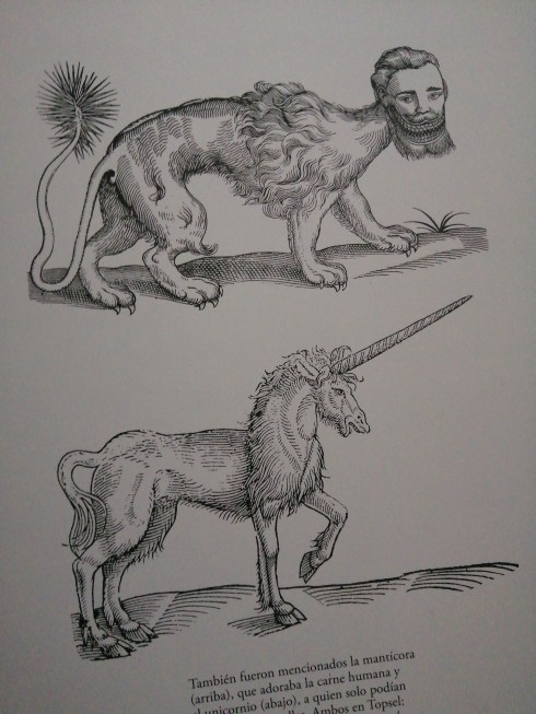 Pero lo que me llamó la atención es que no solo con tener extraña maneras de representar al hombre originario de América como un ser totalmente extravagante como de otro planeta también pensaron en animales fantásticos he irreales que existían con características bastante extrañas Sonsoles una vuelta al asunto me gusta la imaginación que le daban a sus ilustración creo que el hombre siempre lo hace, pero siempre es una continuación negativa.