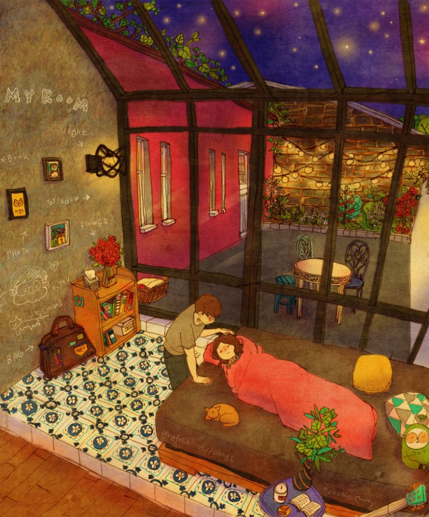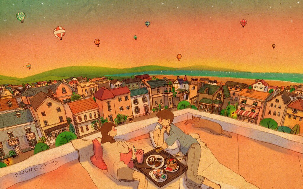 Puuung es una ilustradora de origen coreano, sus ilustraciones están basadas en momentos qué pasa con su pareja como cosas cotidianas que hace con él. Uno de los motivos por los cual elegí a Puuung es porque me gusta el estilo que utiliza en sus ilustraciones ya que pareciera que fueran hechas en acuarela pero son digitales, ella utiliza la plataforma de Photoshop y para esto usa la tableta cintiq de wacom, sus ilustraciones cobran vida ya que la textura y el lápiz que utiliza combina los colores de la naturaleza, también tiene un gran gusto por la arquitectura y eso se puede ver en sus ilustraciones.