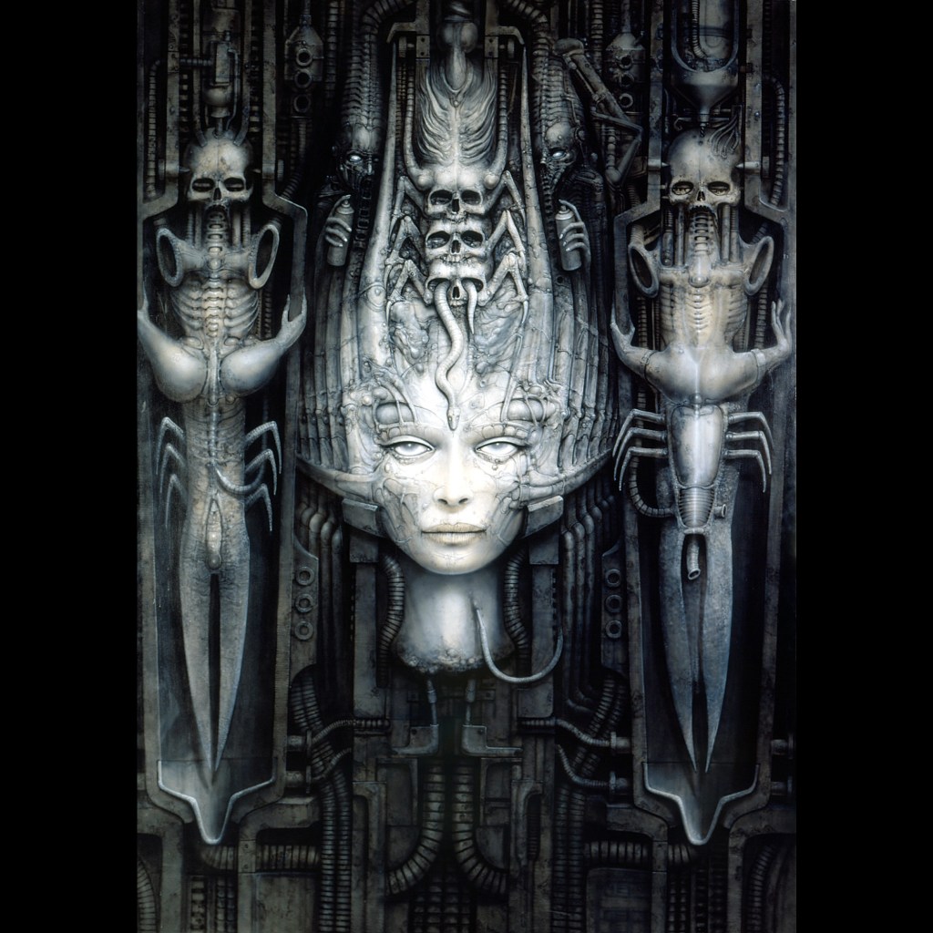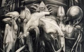 lo que siempre me ha gustado de su obra es el surrealismo que se fue tornando en la creación de mundos fantásticos y lúgubres con seres biomecánicos que muchas veces caen en lo grotesco y sexual, como un mundo paralelo de pesadillas