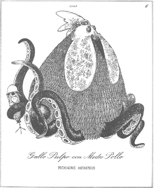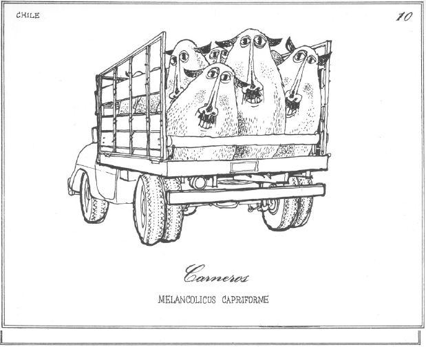 La ilustración entra en juego cuando el texto no es suficiente para retener e interpretar las características de cada una de las especies, y acentúa la ridiculez del idioma popular chileno.