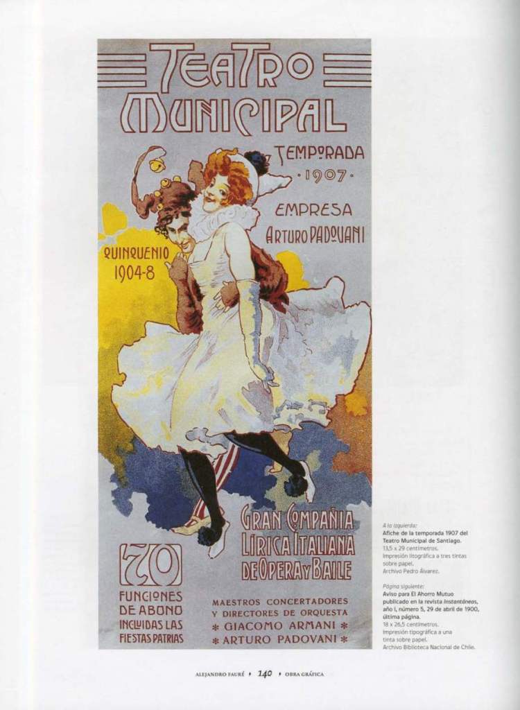 Alejandro Fauré, por su parte fue hijo de inmigrantes franceses en el puerto de Valparaíso en el siglo XIX, destacando la complejidad gráfica de sus diseños litográficos enclavados en una versión art nouveau contemporánea de los grandes maetros europeos, siendo director de arte de publicaciones como Noticias gráficas y con gran importancia en su desarrollo den la Imprenta Barcelona, luego de asentarse en Santiago. Estos dos artistas gráficos son un claro ejemplo de cómo se entendía el oficio gráfico en ese entonces, sin existir la figura del diseño gráfico, podían pasar por todas las etapas de producción, al mismo tiempo que luego la figura del director de arte, e cargo de dar una coherencia visual a todas las prtes y procesos de una misma publicación, en un antecedente directo de lo que hoy entendemos como diseño gráfico.