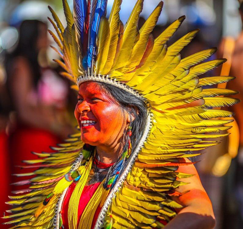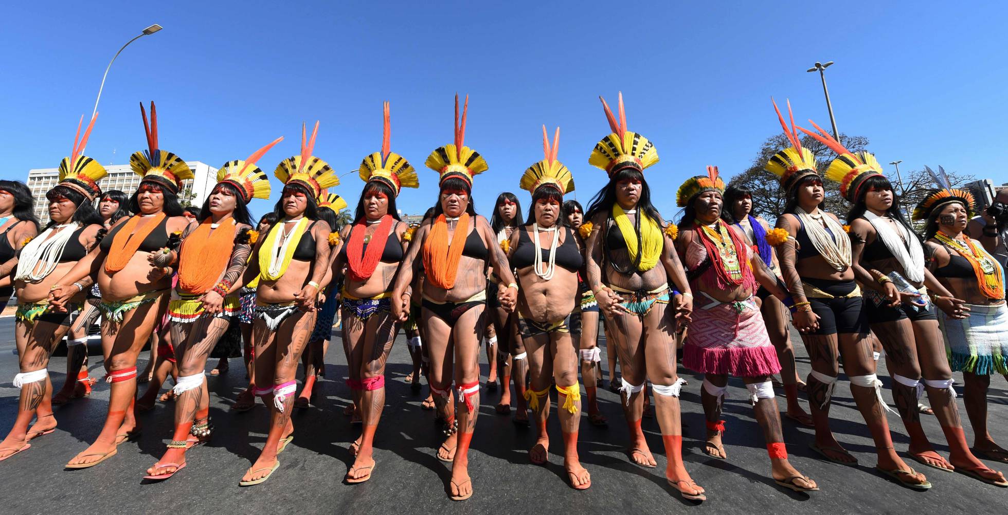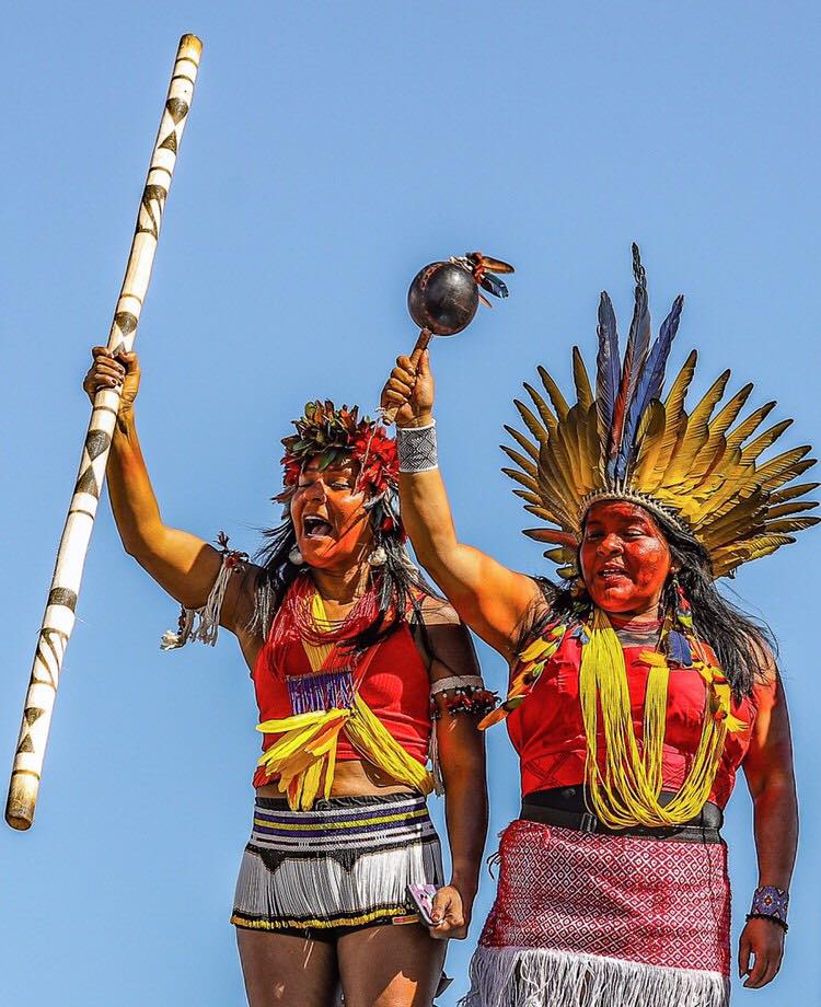 «Miles de mujeres indígenas ocupan la ciudad soñada por Niemeyer. Brasilia se convirtió por cinco días en la sede de la Primera Marcha de Mujeres Indígenas. Organizadas por la Articulación de Pueblos Indígenas de Brasil (APIB), llegaron como representantes de más de 130 pueblos originarios de todo el país. Del 9 al 14 de agosto se reunieron en la capital federal para debatir, visibilizar sus demandas, ampliar alianzas y elaborar un documento final que recoge sus reivindicaciones. Con el lema “Territorio: nosso corpo, nosso espirito”, trazaban la matriz fundamental, añadiendo al urbanismo modernista de la ciudad otras territorialidades y desafíos.