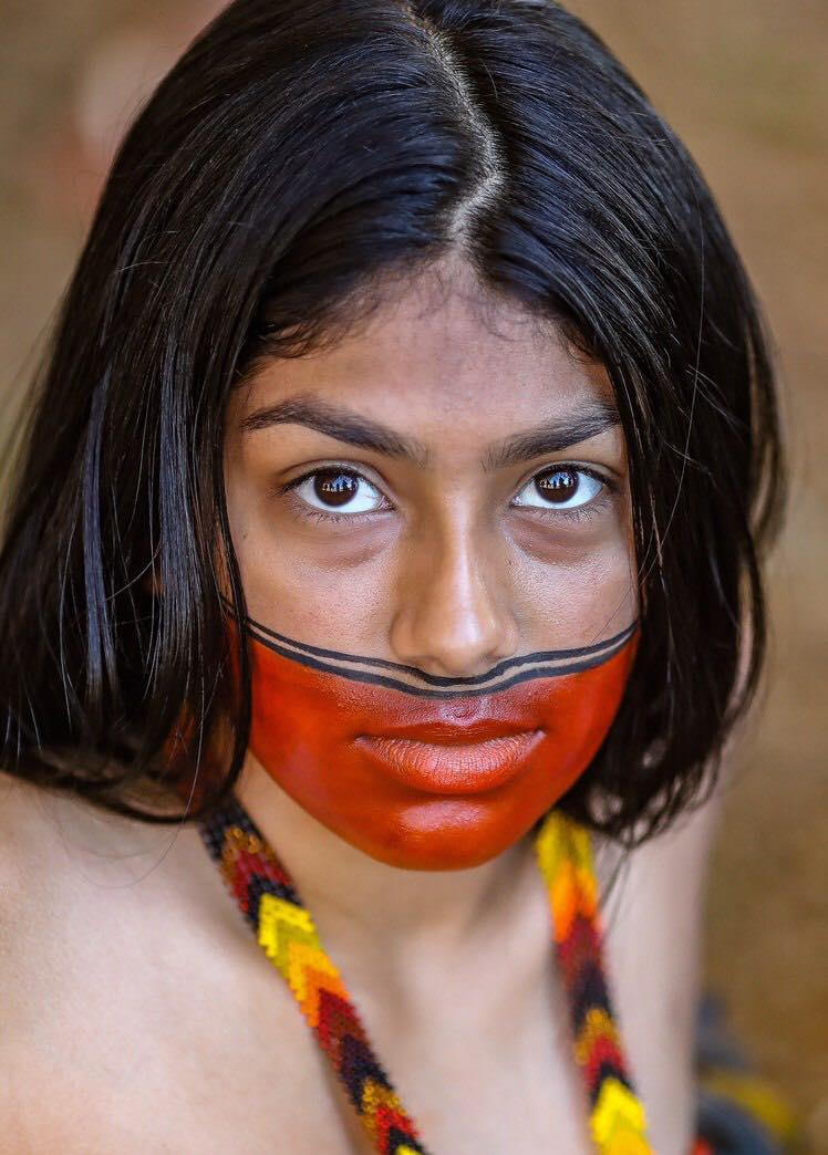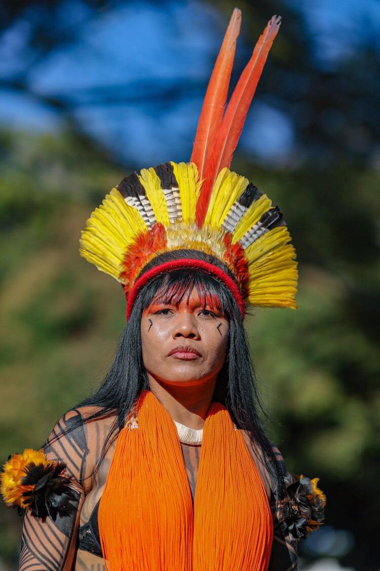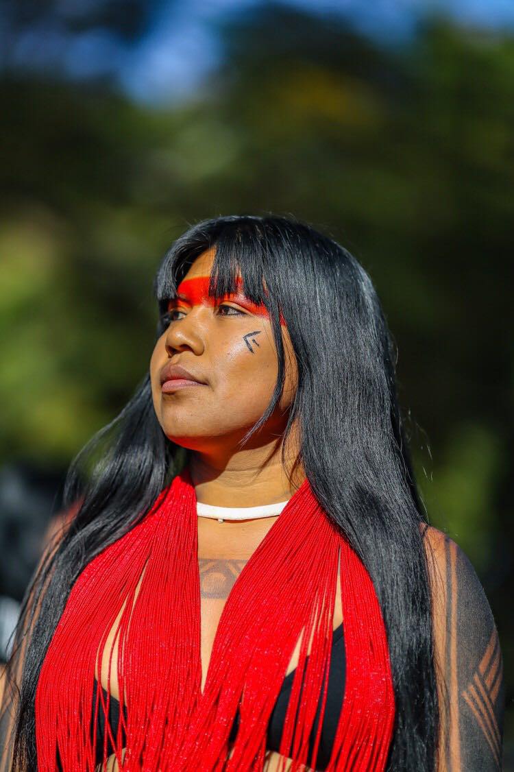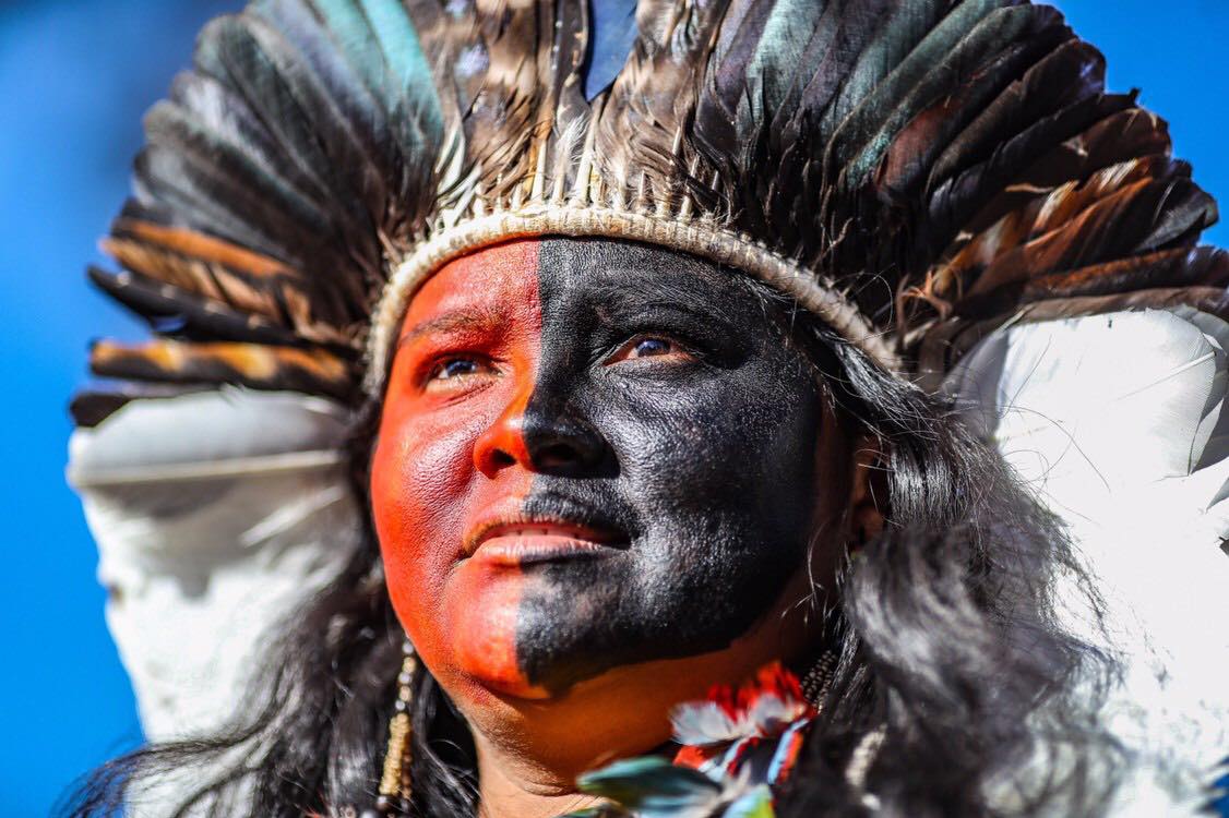 Pintadas con jenipapo y urucum, quisieron mandar un mensaje al mundo y visibilizar el papel de las mujeres que, en su mayoría, se colocan en la primera línea de batalla en la defensa de sus tierras. “Estamos reivindicando el derecho a la vida, y este derecho es defender nuestro territorio. El territorio para los pueblos indígenas es muy importante, es donde nosotros damos continuidad y seguimiento al derecho de vivir. Nosotros nos alimentamos de la tierra, de la caza, de los peces. En cuanto nosotras defendemos el territorio, defendemos también nuestros cuerpos y nuestros espíritus”, explica Puyr, del pueblo Tembé, habitantes de El Alto Río Guamá, al norte del Amazonas.»