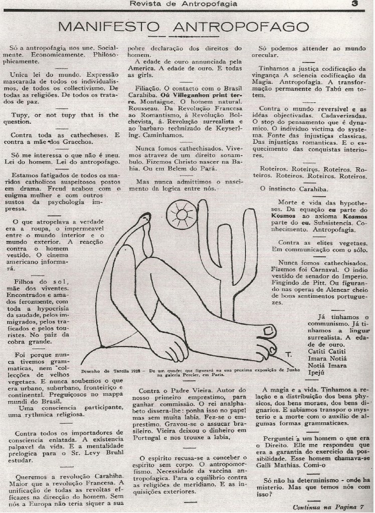 Manifiesto antropófago, Oswald de Andrade, 1928.